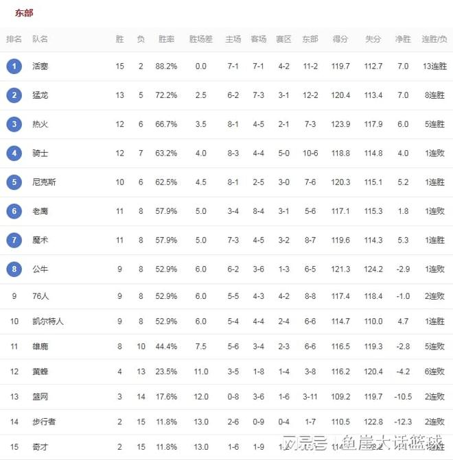 奇才在赢球之后也终于结束了自己的14连败,如今奇才以2胜14负的战绩排在东部第十五的位置,老鹰输掉比赛后排在东部第六的位置。76人在今天的比赛中对阵魔术,本场比赛76人也是伤兵满营,恩比德本来就处于伤病当中,乔治也缺席了今天的比赛,同时76人探花郎埃奇库姆也缺席比赛,加上乌布雷也没有办法出战,所以今天的比赛76人真正能够依靠的球员只有马克西,但是在这场比赛马克西状态一般不说,其他的76人状态低迷还控制不住失误,更让76人所难受的是他们内线防守糟糕,所以这场比赛魔术是早早拉开比分,最终魔术41分大胜76人。