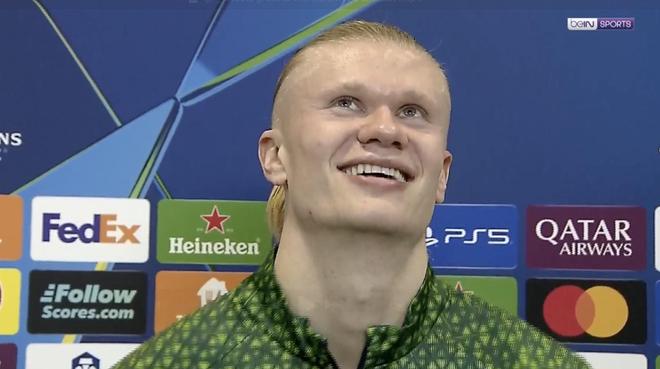 在欧冠客场2-1击败皇家马德里后,曼城前锋哈兰德接受了拜因体育的采访。